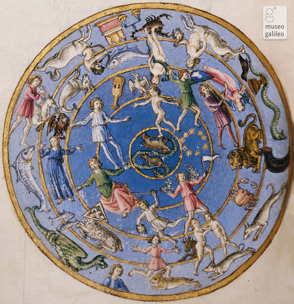 [The image is of a miniature by Francesco Botticini in Florentine humanist Matteo Palmieri’s heretical three-book poem, Città di Vita, written in the mid 15th century, but printed posthumously, in 1528 (after which his remains were dug up and removed from the church they were interred in).]